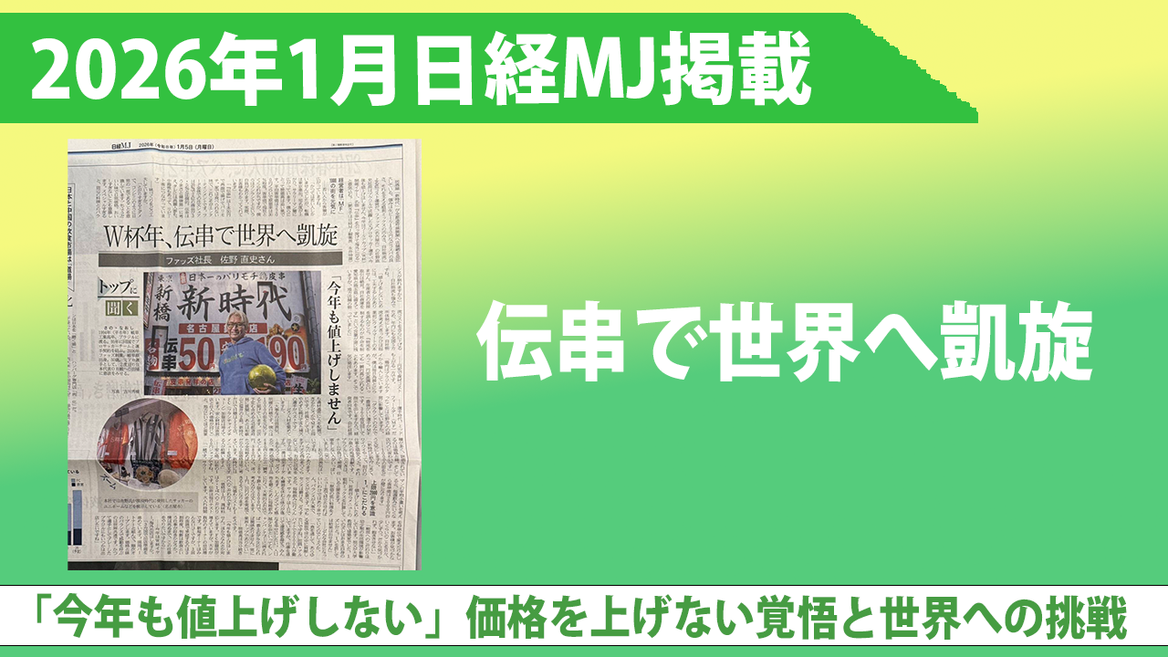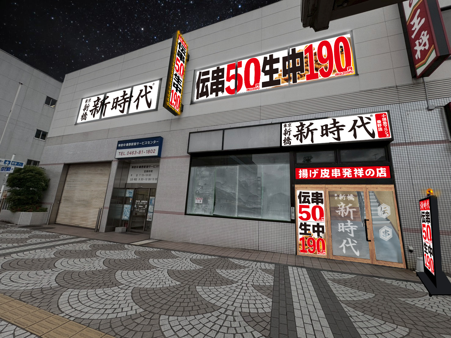 揚げ皮串発祥の店『新時代』が、海老名にオープン! 日本一のパリモチ鶏皮串『伝串』は、新時代の名物であり、これまで累計販売本数3億本…