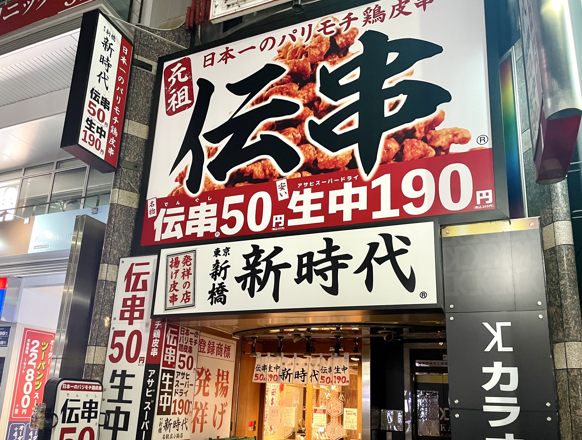 揚げ皮串発祥の店『新時代』が、広小路に帰ってくる! 日本一のパリモチ鶏皮串『伝串』は、新時代の名物であり、これまで累計販売本数3億…
